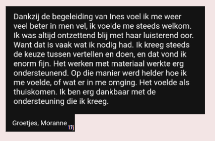 Ik ben een creatieve begeleider en mentor, een luisterend oor en vaak de verbindende factor in een groep.